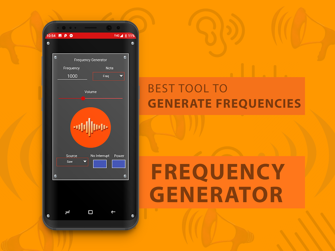 Frequency Generator - Tone Generator lets you experiment with different frequency sounds . This app lets you create sounds from low frequency all the way to high frequency of 22 kHz.