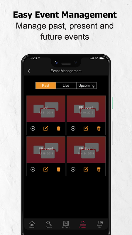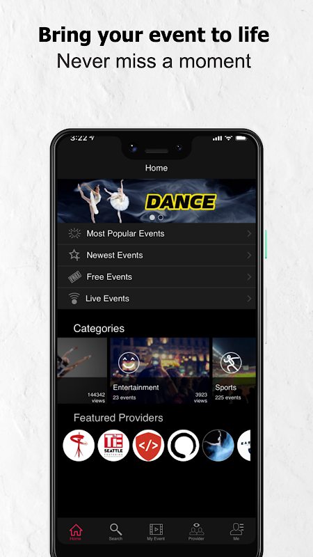 Share your favorite event or provider account through Facebook, Twitter, Google+..