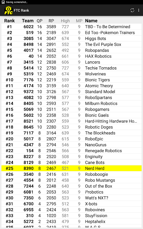 . Select one or more teams to follow by long-clicking their name on the "FTC Rank" screen, and see those teams highlighted in all screens.
