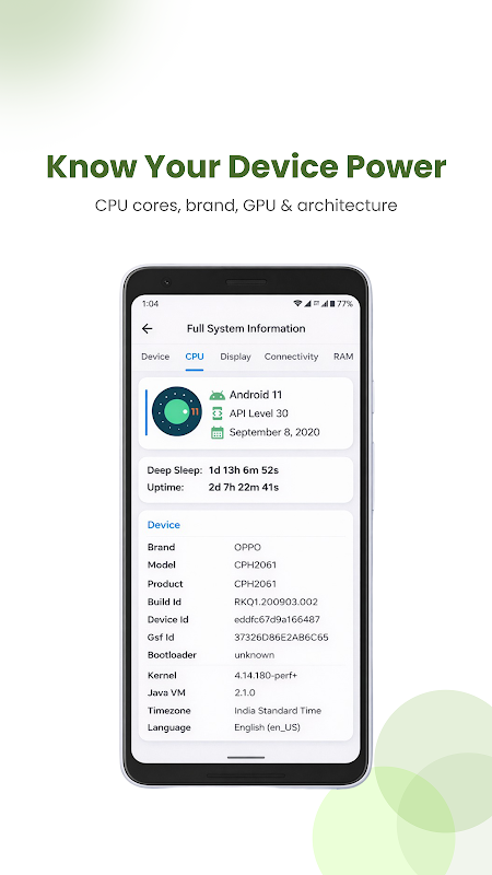 Android Pełna informacja o systemie zapewnia tajny kod Androida, który pomaga przetestować przykład swojego urządzenia