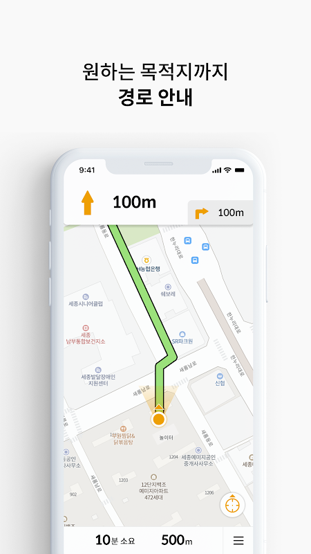 정확한 방향정보와 입구정보를 통해 목적지에 갈 수 있도록 서비스를 제공합니다.
