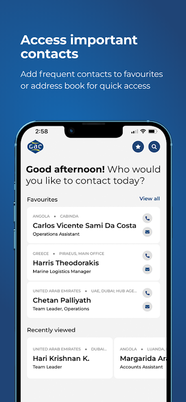 GAC Mobile Directory to bezpłatna aplikacja umożliwiająca dostęp do danych kontaktowych Grupy GAC