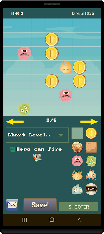 Strzelaj i stwórz własny, niesamowity poziom gry i podziel się nim ze znajomymi! Twórz poziomy zręcznościowe, które zachwycą innych!