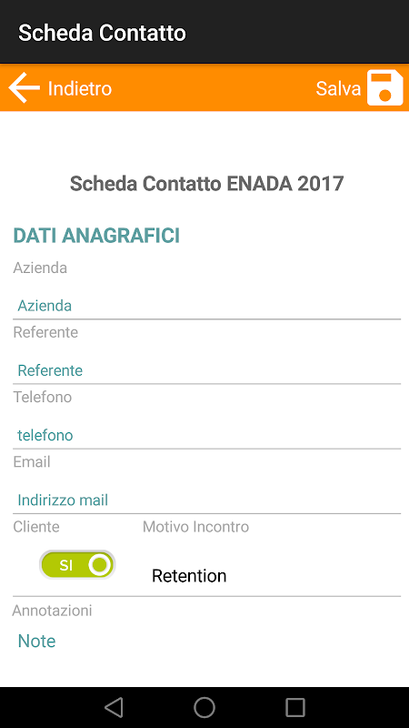 Ta aplikacja pozwala na zapis informacji o kontaktach biznesowych z klientami na imprezach lub targach.