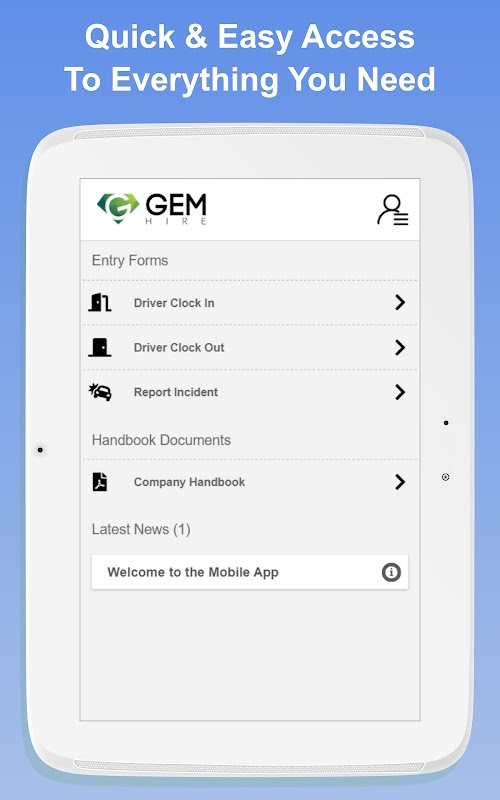 Oficjalna aplikacja Gem Hire Limited umożliwia kierowcom dostęp do swoich faktur, zmianę danych osobowych, przeglądanie podręczników, przesyłanie wymaganych formularzy dziennych oraz otrzymywanie aktualizacji i powiadomień od OSM