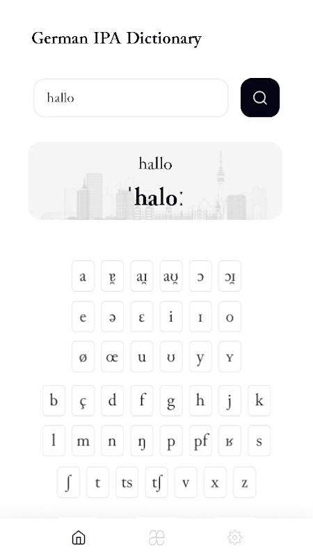 Wyszukaj dowolne słowo, a zostanie wyświetlone jego tłumaczenie IPA. Klawiatura IPA jest również dostarczana z każdym dźwiękiem nagranym przez native speakera.