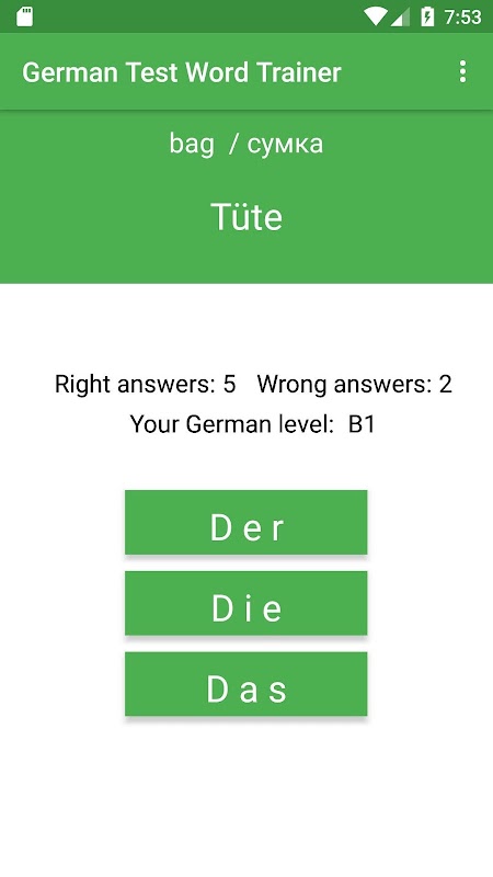 Informacje German Test Word Trainer, Grammar A1 A2 B1 B2 C1 APK