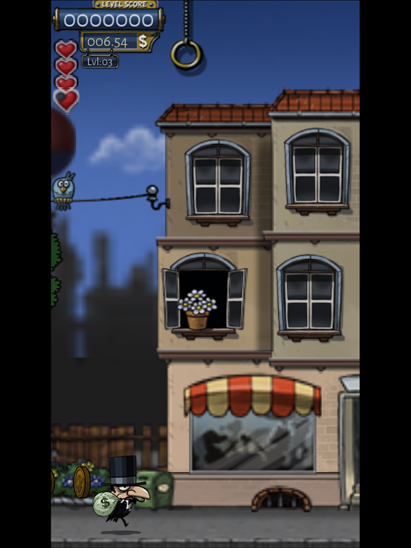 Mr Fiquette, Master Gentleman Thief, has broken out of jail and setting his sights on the good citizens of Bootleg City. Come, join the fun of stopping Mr. Fiquette by dropping objects onto his head before he reaches his Hot Air Balloon and gets away.