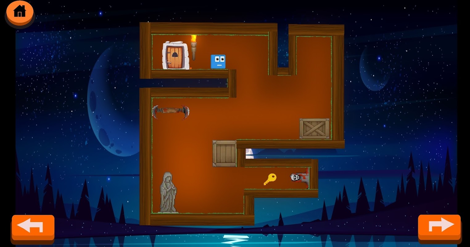 Musisz zabrać klucz, omijając pułapki, a kiedy zabierzesz klucz, drzwi się otworzą, po czym wyjdziesz z nich.