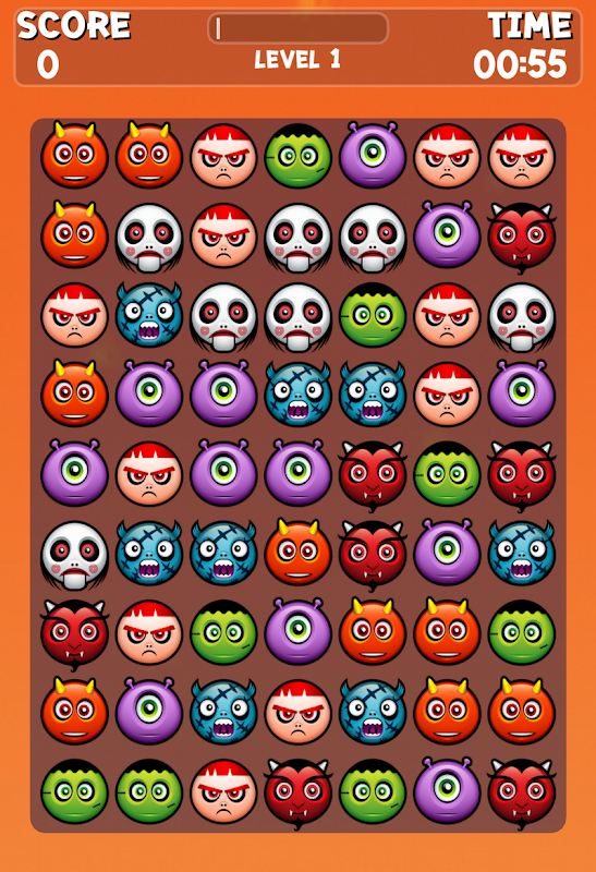 Devil, mummy, pumpkin... Let's play with these cute Halloween monsters! This is a simple, yet quite polished and funny matching game, hope you like it. Global ranking is also involved. And we hope to see your name in the first 10. Have fun!