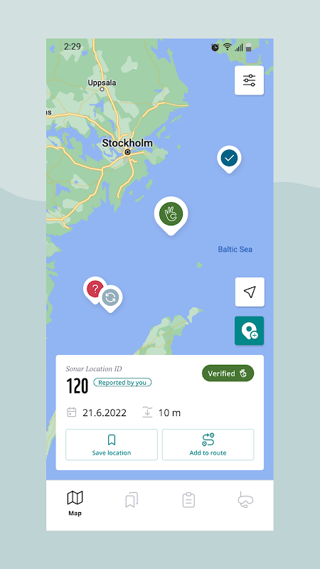Jeśli dostrzegłaś/eś zagubione (lub w inny sposób) utracone narzędzie połowowe – dodaj zgłoszenie! Jeśli chcesz przeprowadzić nurkowanie weryfikacyjne – zapoznaj się z widocznymi na mapie miejscami, w których najprawdopodobniej znajdują się sieci widma. Położenia te ustalono na podstawie zgłoszeń od użytkowników morza lub bazując na zdjęciach sonarowych. Możesz zapisać interesujące Cię miejsca w aplikacji i za pomocą funkcji trasy zaplanować najbliższe nurkowanie. Trasy można wyeksportować jako plik .gpx.