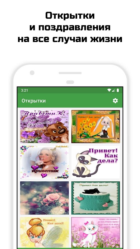 - Огромная коллекция ежедневных открыток и пожеланий с добрым утром или спокойной ночи, открыток по именам, открыток на все праздники, открыток на каждый день недели, для разных профессий, возрастов и на любой вкус – все это есть у нас в приложении и на все случаи жизни;