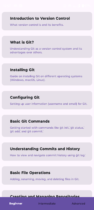 Git Guru to najlepsza aplikacja do nauki Git i GitHub oraz zostania guru GitHub. Niezależnie od tego, czy dopiero zaczynasz, czy jesteś doświadczonym programistą doskonalącym swoje umiejętności, Git Guru oferuje wszechstronne doświadczenie edukacyjne. Od podstawowych poleceń Git po zaawansowane przepływy pracy GitHub — ta aplikacja gwarantuje opanowanie Git i GitHub we własnym tempie.