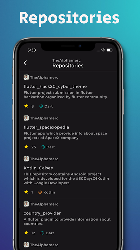 Git connect to nieoficjalna aplikacja kliencka GitHub typu open source opracowana we flutter.