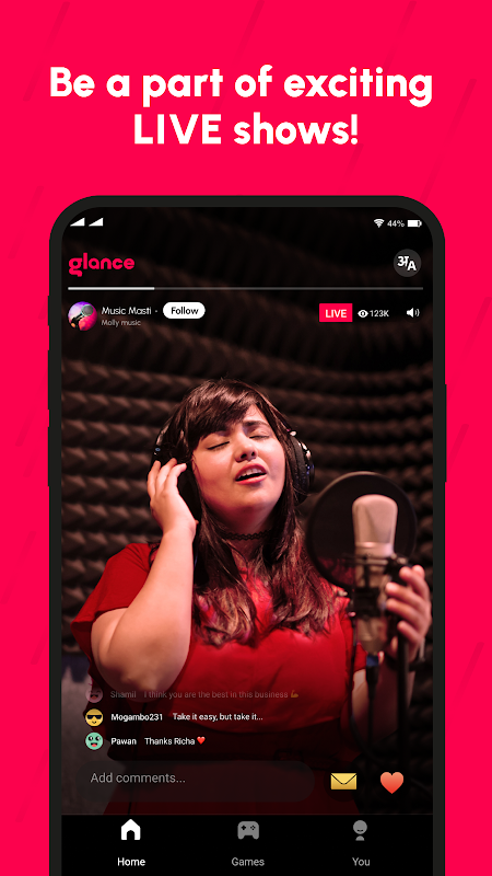 Za każdym razem, gdy zablokujesz telefon, wejdziesz do świata Glance i znajdziesz aktualizacje oraz informacje na Twoje ulubione tematy, spersonalizowane specjalnie dla Ciebie w łatwym do przekąszenia formacie. Możesz także korzystać z centrum gier, które pozwala grać w zabawne, casualowe gry bez kłopotów z pobieraniem.
