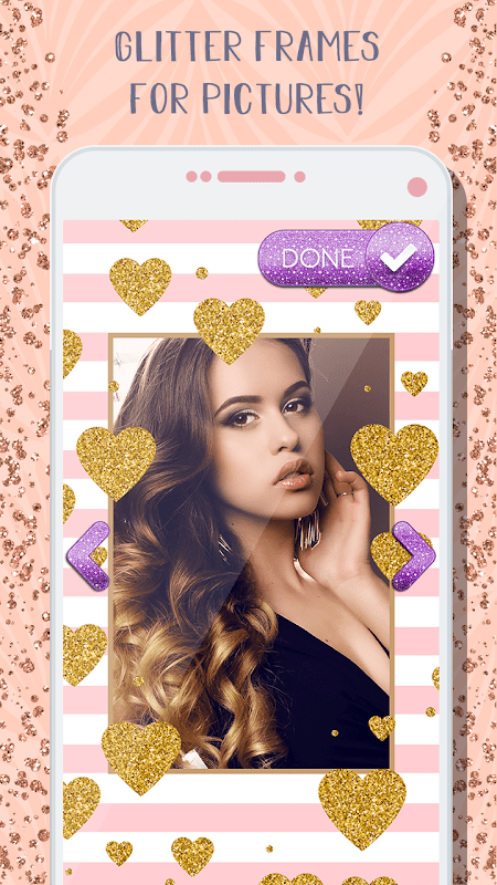Włącz błyszczącą aplikację aparatu i pozwól magii zacząć! Zyskaj swój blask na każdym zdjęciu, które modyfikujesz w tym magicznym edytorze zdjęć! Konstrukcja tych ramek 💖 Brokat Ramki Na Zdjęcia - Glitter 💛 pozostawi Cię bez tchu! Zapisz swoje błyszczące zdjęcia na swój telefon komórkowy i wykorzystaj je jako obrazy kontaktowe! Miej jedną z najpiękniejszych aplikacji dla redaktorów na swoim urządzeniu! Wykorzystaj szansę, aby być najsłodszą dziewczyną z ramkami do zdjęć miłosnych! Wypróbuj tak dużo ramek dziewczęcych, jak chcesz zupełnie za darmo!