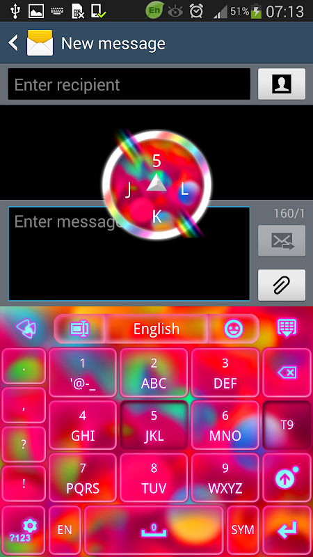 "GO Keyboard Color Bubble Theme" is a vibrant elegant theme, designed by Inner Works Studios, for those who love colors on their keyboard. This shiny new theme has glowing pink buttons set on a bright wallpaper, filled with a rainbow of colors spanning across pink, blue, purple etc. and cute glowing white font to match. It is so colorful and cute that makes your mood very happy. Get the colors of the rainbow with "GO Keyboard Color Bubble Theme"! We hope you enjoy Color Bubble theme!