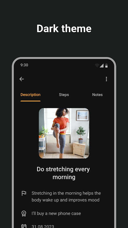 Planer celów oferuje wygodny format tworzenia inteligentnego celu. Dodaj zdjęcie, napisz, co Cię motywuje i zastanów się, jak wynagrodzisz się po pomyślnym osiągnięciu celu. Możesz również określić termin realizacji celu, aby jeszcze bardziej się zmotywować.