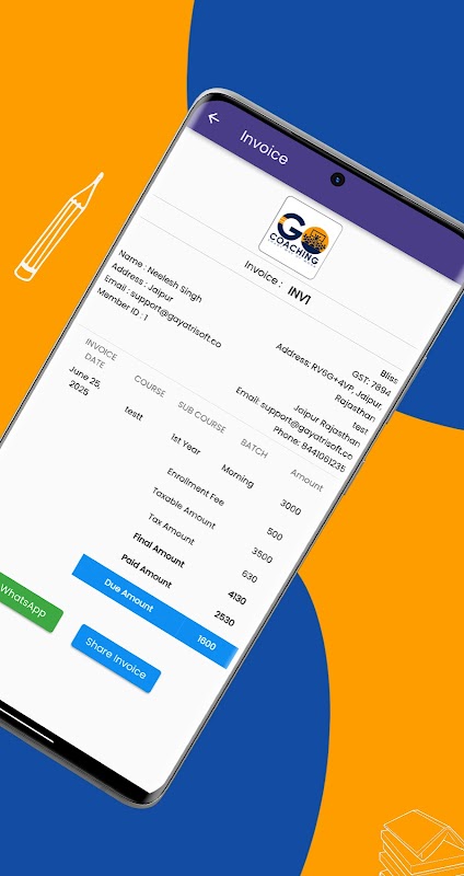 Go Coaching to najmądrzejsza inicjatywa w obszarze zarządzania Instytutem i Coachingiem. Aplikacja Go Coaching zaprojektowana z myślą o potrzebach zarządzania coachingiem działającym na całym świecie, w każdym aspekcie, od zarządzania tutorami po rejestrację uczniów i powiadamianie, uwzględniliśmy wszystkie podstawy, aby zapewnić bezproblemowe działanie i maksymalny zysk Właścicielom Coachingu . Go Coaching ma kluczowe funkcje, takie jak zarządzanie partiami, zarządzanie frekwencją, zarządzanie płatnościami, przypomnienia o płatności, wiele raportów, masowe SMS-y, SMS-y WhatsApp i wiele innych, co czyni go bardziej użytecznym i wygodnym dla właścicieli coachingu. Ponadto aplikacja posiada specjalną funkcję zarządzania wieloma oddziałami dla tych, którzy prowadzą więcej niż 1 oddział