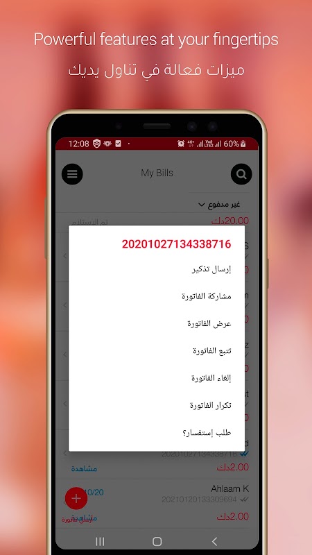 يمكنك التطبيق من إرسال الفواتير إلى عملائك عبر رابط وتحصيل المدفوعات أونلاين بكل سلاسة وأمان