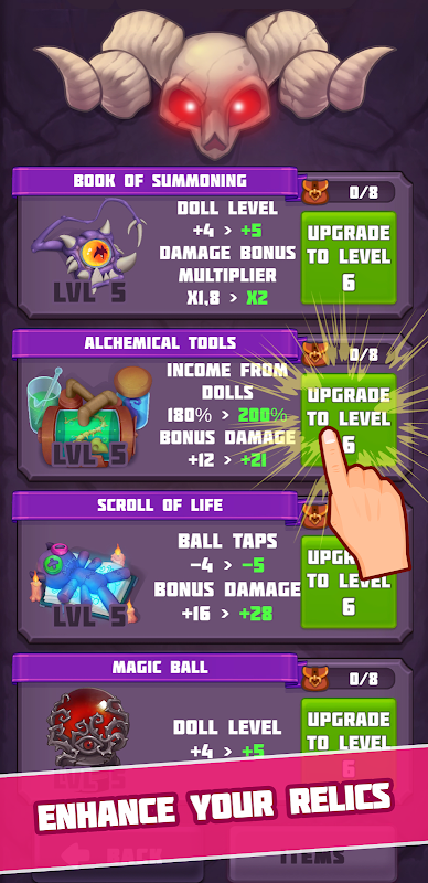 Łącz rytualne lalki i ulepszaj artefakty, aby uratować boginie przed potworami.