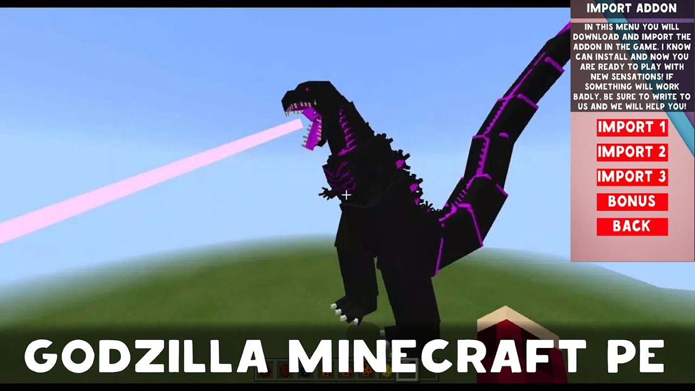 Godzilla mod for Minecraft PE is an addon that adds Godzilla VS Kong for Minecraft PE. Install Godzilla mod for Minecraft Pocket Edition, rejoice and let all other players envy your Godzilla