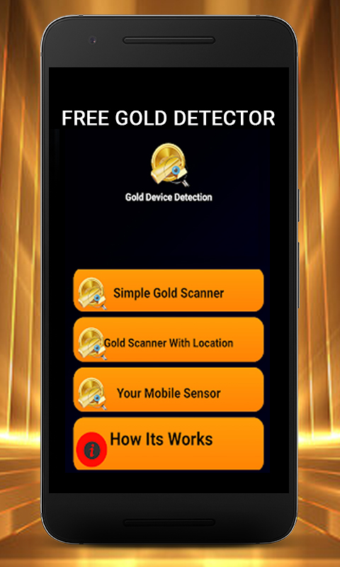 Gold Detector to jeden z najlepszych skanerów złota do wykrywania złota, który można łatwo wykryć za pomocą sygnału dźwiękowego. Skaner złota wykrywacza złota znajduje również ukryte przedmioty, które zgubiłeś. Użycie tego wykrywacza złota i metalu polega na naciśnięciu przycisku skanera wykrywacza złota po naciśnięciu przycisku OK i znalezieniu metalu, gdy telefon komórkowy zacznie głośno wydawać sygnał dźwiękowy, gdy skaner aparatu z wykrywaczem złota i aplikacja mobilna wykrywacza metalu znajdą złoto i metal w pobliżu Ty. W rezultacie, gdy ten prawdziwy wykrywacz złota i aplikacja mobilna skanera złota wykryje złoto lub metal, powiadomi Cię sygnałem dźwiękowym. Teraz jest to łatwy sposób na wykrycie zagubionego i ukrytego złota wokół ciebie.