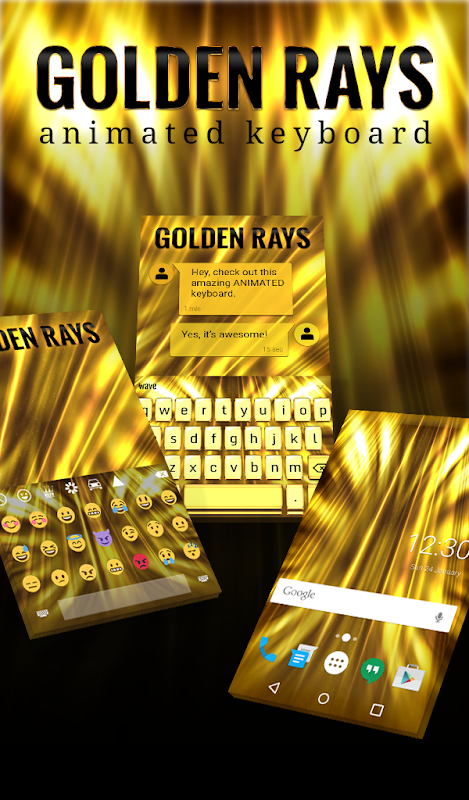 Animowana klawiatura Złotych Promieni to niesamowita aplikacja do personalizacji, która nadaje Twojemu telefonowi z Androidem nowy, stylowy wygląd. Fajne tapety i aplikacje Wave pomogą ulepszyć urządzenie w zaledwie 3 krokach: