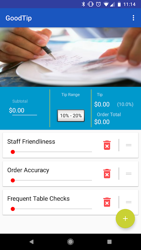 Now it is more convenient than ever to decide how much to tip! Have you ever gotten the check at dinner and just guessed at a good tip? Stop asking others at your table how much a good tip is and start using GoodTIp! Now it's as easy as opening GoodTIp, rating your experience, and then paying with confidence. Add as many ratings as you want, rate them however you want, and GoodTip takes care of the rest. You won't ever have to have that awkward conversation again with your dining partner(s), in fact everyone can get in on the action to find their good tip.