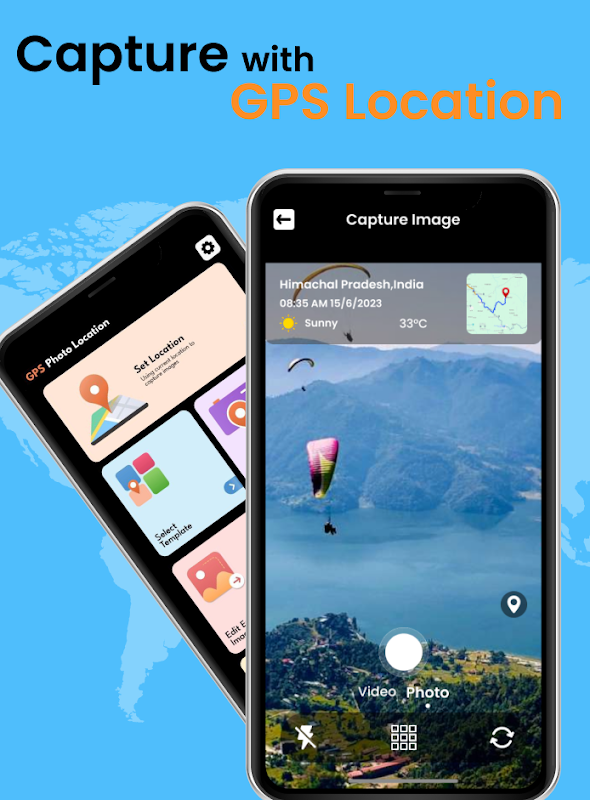 Korzystając ze zdjęcia GPS na żywo, możesz dodać szczegółowe informacje o lokalizacji GPS wraz z aktualnymi informacjami o pogodzie, datą, godziną, długością i szerokością geograficzną, klikając zdjęcia. Do zdjęć z galerii możesz także dodać szczegóły lokalizacji GPS, pogodę, datę i godzinę.