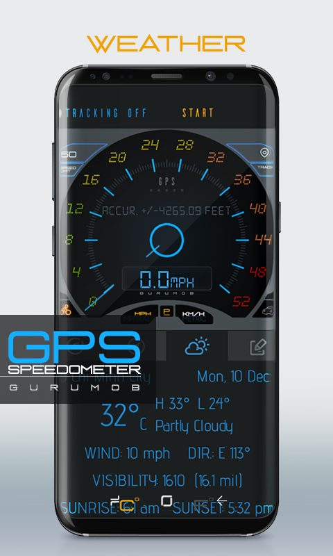 GPS Speedometer - Track your speed, distance, time, location and also can get start time, time elapsed, average speed, max speed, altitude...