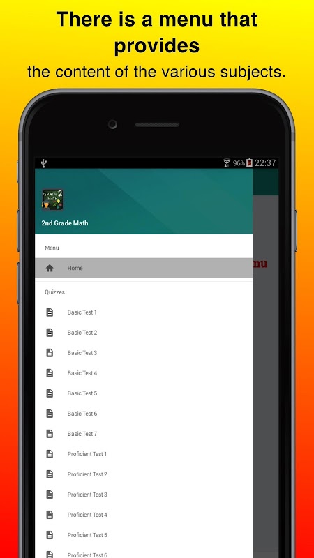 This app gives you an opportunity to test your skills in all Math subjects by performing tests.