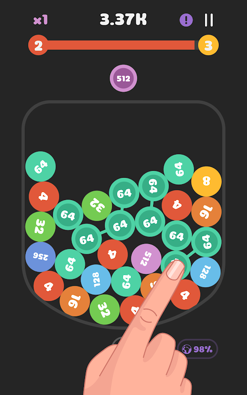 Sprawdź tę piękną kolorową grę logiczną. Przenieś palec nad bąbelki i połącz je, aby połączyć się w większe liczby. Ta gra jest pełna niespodzianek i niekończącej się zabawy. Porównaj swój najlepszy wynik i poziom z przyjaciółmi, czy możesz osiągnąć szczyt? O tak, to jest o wiele trudniejsze, niż się wydaje! Uwaga, fizyka w środku!