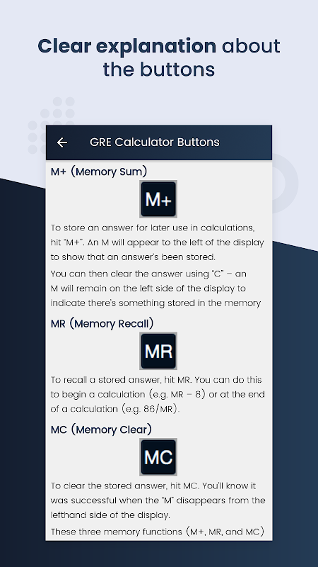 Kalkulator GRE to czterofunkcyjny kalkulator GRE dla osób testujących GRE. Aplikacja została zaprojektowana ze standardową oficjalną wersją kalkulatora GRE. Możesz użyć tego kalkulatora GRE do takich obliczeń, takich jak długi podział, lub obejmować pierwiastki kwadratowe.