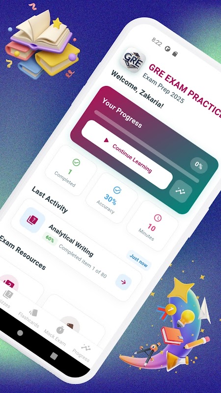 Rozpocznij GRE z pewnością siebie, korzystając z GRE Exam Practice, kompleksowego rozwiązania przygotowującego do egzaminu Graduate Record. Niezależnie od tego, czy pracujesz nad rozumowaniem ilościowym, rozumowaniem werbalnym, czy pisaniem analitycznym, ta aplikacja oferuje wszystkie potrzebne narzędzia, od realistycznych quizów po pełne egzaminy próbne, fiszki i śledzenie postępów.