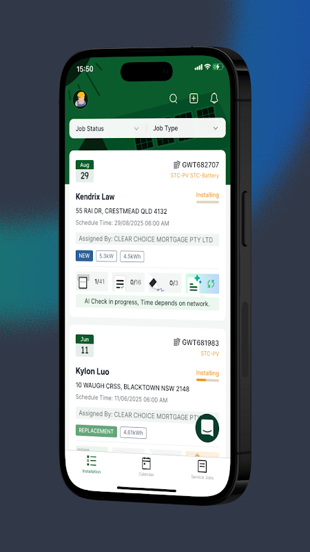 Instalatorzy mogą wyświetlić szczegóły pracy, a także być w stanie wykonać kontrolną pracy zgodnie z wymaganiami ich detalicznego.