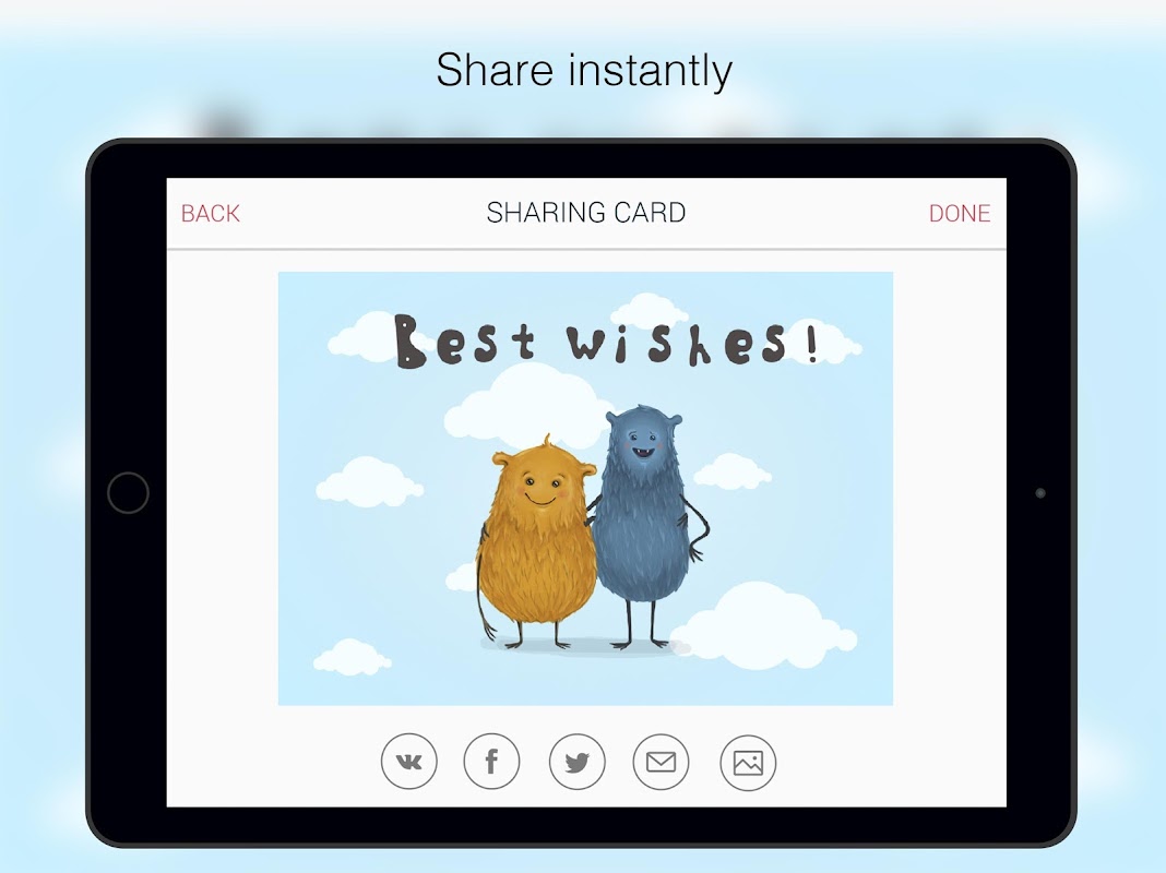 Otrzymywanie prezentów jest czymś, co wszyscy lubią. Pocztówki utworzone w aplikacji nie pozostawiają obojętności ani dzieci, ani dorosłych. Niech Twoja wyobraźnia objawia się w 100%! Aplikacja "Powitanie" to magiczny świat, pełen jasnych barw i oryginalnych pomysłów.