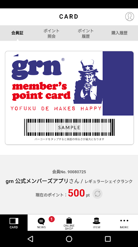・会員証バーコード(店頭でご購入の際にレジでご提示ください)