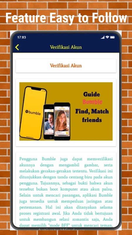 Guide Bumble Dating Chat with a simple design, doesn't make your smartphone heavy.
