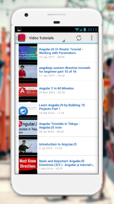Dziesiątki kompletny poradnik dla tych, którzy chcą się uczyć Angular JS. Wszystko poradnik, odpowiednie dla początkujących, jak i biegły w użyciu Angular JS. Oto niektóre listy tutoriali, które można znaleźć w tej aplikacji: