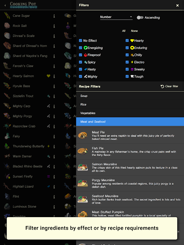 - Zobacz szczegóły przedmiotu, w tym lokalizacje, dropy wrogów i efekty