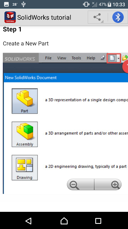 Here we go with the list of the current Solidworks tutorials you will find on the app.