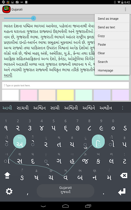 Gudżarati czcionki i słownik plugin MultiLing O Keyboard. To nie jest niezależna aplikacja, zainstaluj OKeyboard wraz z tej wtyczki.