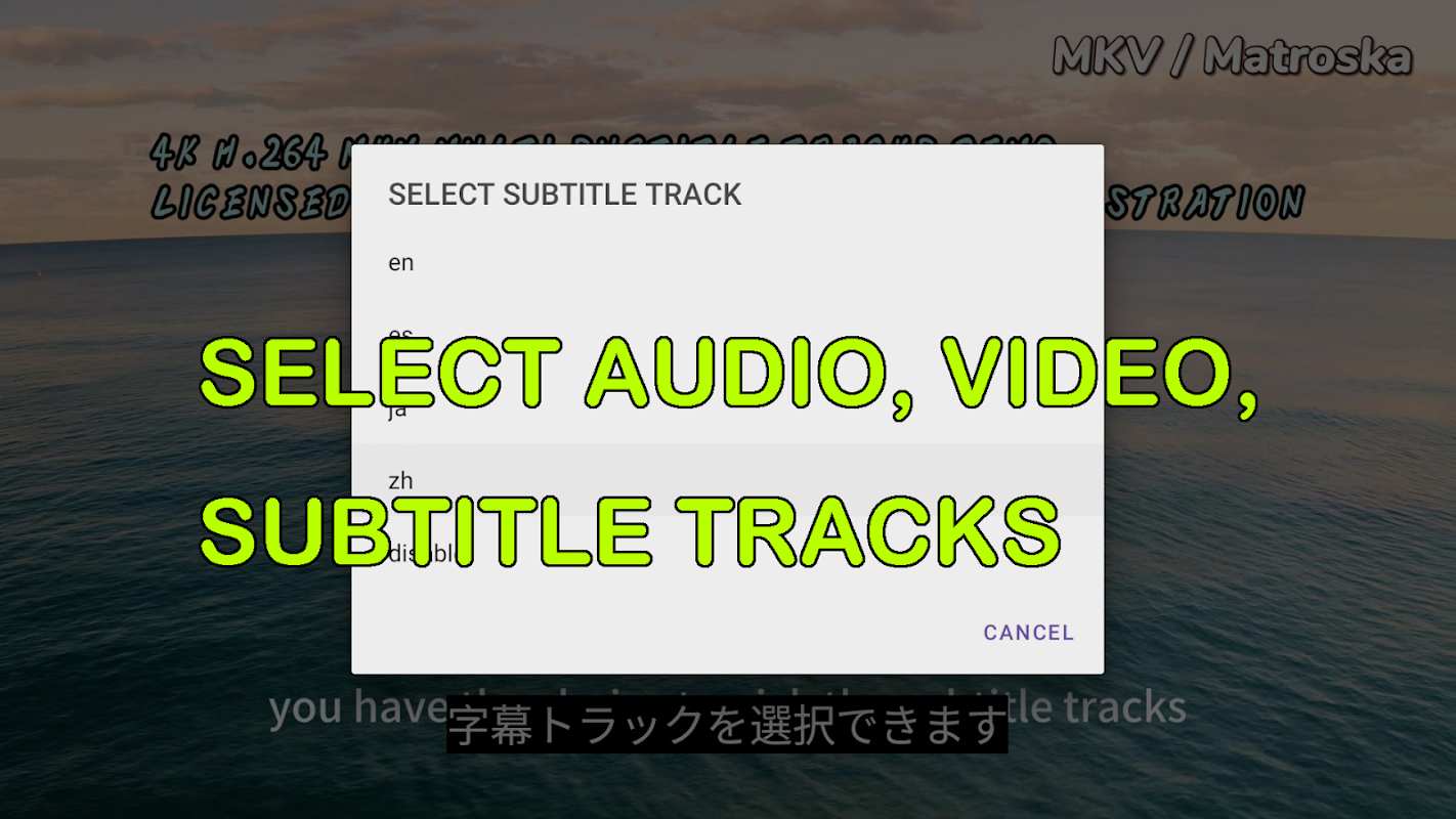 Zaawansowane opcje odtwarzania: Wybierz ścieżki wideo, ścieżki audio i ścieżki napisów podczas odtwarzania (jeśli są dostępne), aby dostosować sposób oglądania.