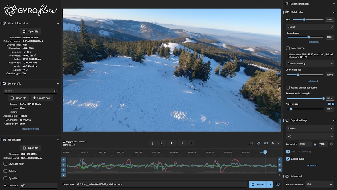 Stabilizacja wideo za pomocą danych żyroskopowych