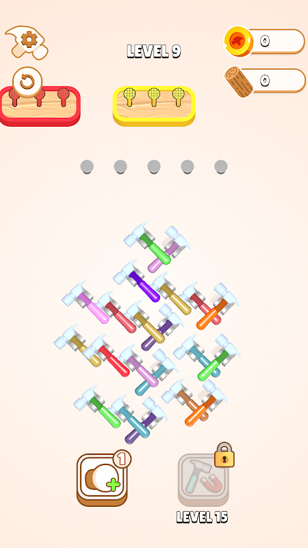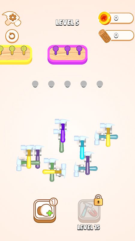 Sprawdź swoje umiejętności rozwiązywania łamigłówek, dopasowując młotki do gwoździ w odpowiednich kolorach!