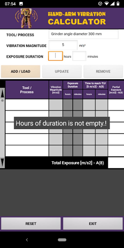 Hand-Arm Vibration Calculator 1.1.0