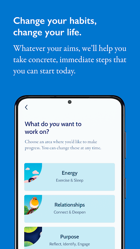 Niezależnie od tego, czy skupiasz się na samodoskonaleniu, rozwoju osobistym, czy po prostu na budowaniu lepszych codziennych nawyków, Happier oferuje Ci elastyczne podejście, które dopasowuje się do Twojego życia.