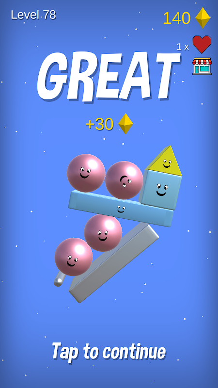 Empilhe os cubos, triângulos, esferas e retângulos de forma que se equilibrem para vencer os desafios super legais de Happy Stack!!