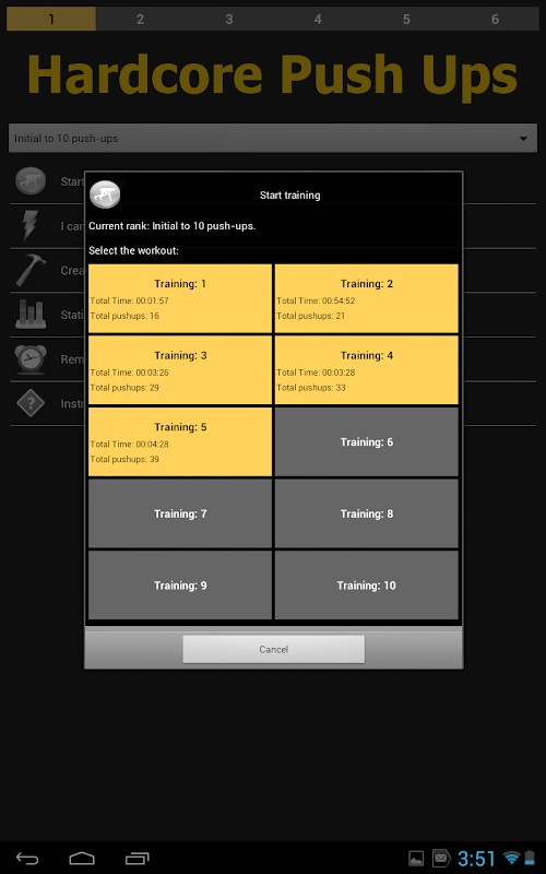 - 60 workouts with difficulty increase